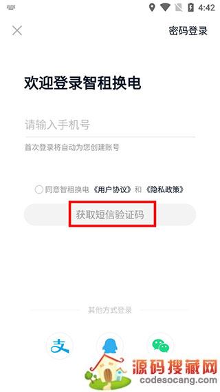 1、先从本站下载好智租换电APP,下载完成后打开软件,进行登录。