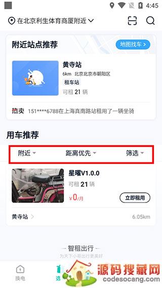 1、查询附近租车站点、换电柜信息;