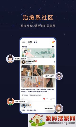 healer最新版是一款可以满足倾诉欲,传递温暖的匿名社交APP平台。在这里烦恼心事不方便写在朋友圈和空间又希望向他人倾诉?在这里你可以自由自在的记录你的一切,随意表达你的感受。这里是一个陌生人交友平台,这里也是一个记录内心真实的私密空间,又或者把它当做闹市中的一间安静茶馆,让心灵在这里休息一会。大多数社交平台以颜值社交为主,Healer则与之不同,选取了小巧精美的设计风格,舍弃传统用户自定义上传照片的功能,而是内置了一批可DIY的二次元卡通形象,这与软件的设计基调相符,做一个主打治愈系的社交平台。如果你在寻找一个能够倾诉自己烦恼,真实表达自我的地方,就来healer最新版吧。
