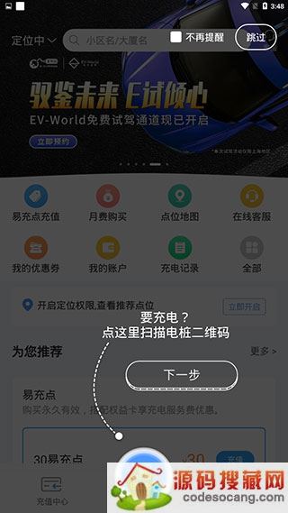 1、要充电?点中间这里的【扫码充电】按钮,扫描电桩二维码。