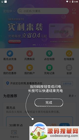 4、当扫码按钮变成闪电,长按可以快速【结束充电】。