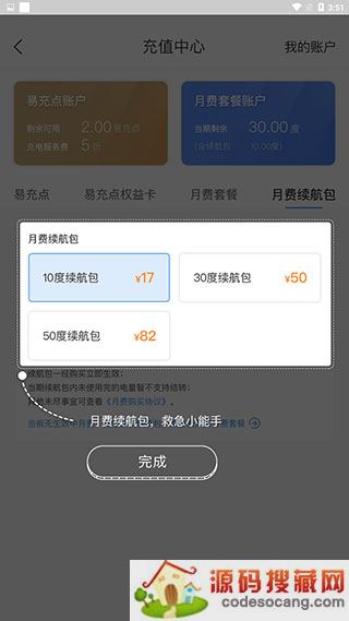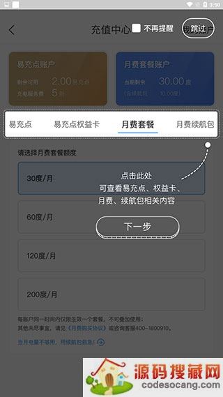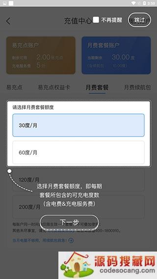 4、选择月费【套餐额度】,即每期套餐所包含的可充电度数,其中已经包含了电费和充电服务费。