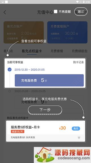 3、上面还可查看当前【可享权益】,选购权益卡后,可以享受充电服务费优惠。