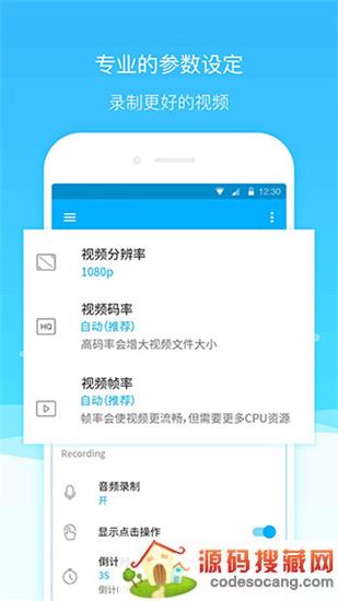 2、提供多项专业参数设置,实现高清流畅录屏,同时超级录屏会自动根据当前手机硬件配置,设置最适合的参数。