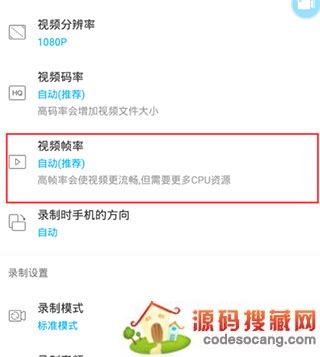 4、要是大家的手机配置高,那视频帧率可以选择高一点,这样视频会更加的流畅,但如果手机配置不行,用户在录屏的时候会卡,建议仔细斟酌。