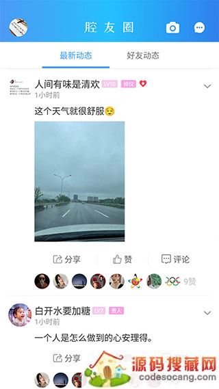3、而在【腔友圈】页面,我们还能看到其他用户发表的动态。