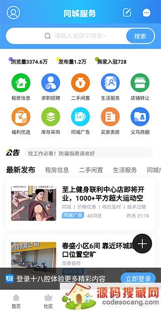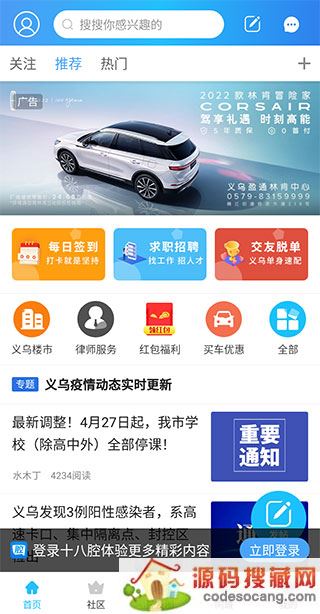 2、切换到【社区】页面,我们还能看到义乌城事、义乌楼市等小功能。