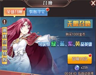 2、召唤里的英雄召唤,有概率获得高级英雄