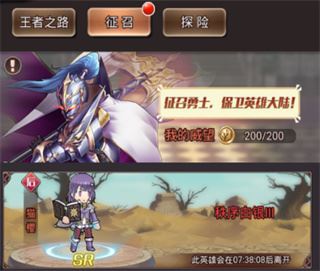 4、征召,点左下角段位可以看到,花费威望可获得高级英雄,达到段位要求即可征召英雄,规定时间内未征召英雄英雄会离去。