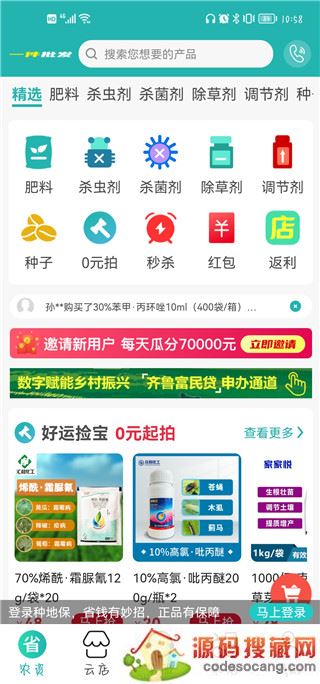 种地保APP是一款优质的农资批发软件。该软件不仅为用户提供了各种农资产品的批发还提供管理各种农活服务,软件土工了各种农资产品分类非常的齐全详细,中尅也非常的多,包括各种肥料,杀虫剂,除草剂,种子等各种产品,用户有需要的都可以在这里找到,价格便宜实惠,同时还有正品保障,用户可以放心购买使用。不仅如此,用户还可以在这里看待各种农活信息,用户可以根据自身的条件进行接单,各种水稻收割,大豆收割,玉米收割,飞防植保等多种农活这里都有,用户还可以在软件上发吧自己的农活信息,有用户觉得合适就会接单,非常的方便快捷。除此之外,软件还为用户提供了云店功能,用户可以上传自己的商品信息进行售卖,有问题可以资讯客服。