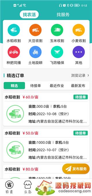 6、众多机手在线抢单并提供农业种植服务,方便又快捷。
