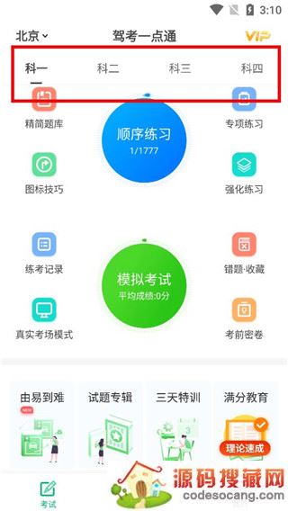 2、在主界面当中即可看到科一到科四等多个考试板块以及丰富的题库,练习板块