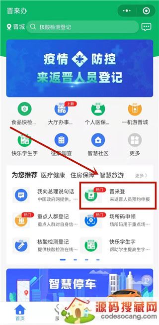 1、同上,安装好软件后打开进入首页,点击“晋来登”