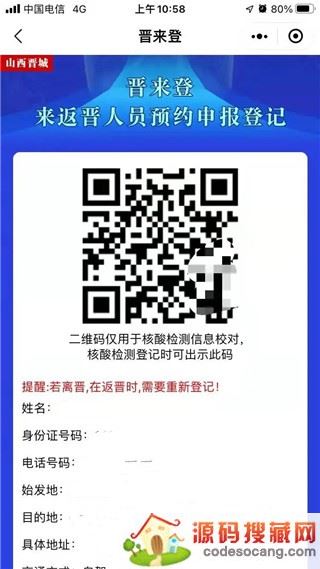 3、当信息提交后即可生成个人信息二维码,请在核酸检测时出示此二维码