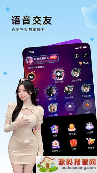 3、集语音聊天、声音交友、音乐陪伴为一体的语音交友互动平台。