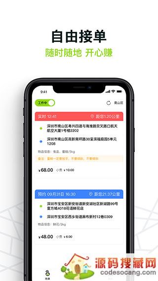 1、接单灵活,兼职配送员自由接单,入职专职合理派单。