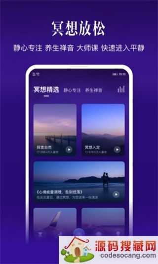 顶空app是一款专业的解压助眠软件,能够帮助你安心的进行睡眠,不在失眠睡不着,由专业的专家进行录制并且添加各种自然的声音,大自然的纯音乐,让你放空自己,缓解你的压力,快速进入睡眠。当你出现了睡眠质量差,反复翻身睡不着的时候,可以下载顶空,帮助你合理的阶段失眠症的难题,利用歌曲中的自然特点,帮助你加深睡眠。在播放音乐时,3D立体环绕播放音源效果,让你感觉身处于大自然当中。软件音乐类型丰富,你可以选择适合你得那一首。听着大自然的声音,放松你的心情,有需要的朋友快来下载体验!