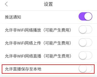4、在“设置”页面中,找到“允许直播保存至本地”栏目。