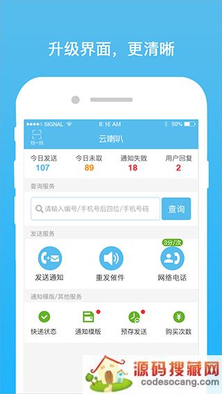 云喇叭快递取件通知APP是由成都身边科技有限公司开发的一款快递通知取件软件。软件以快递物流行业为基点,力求用高科技解决服务行业效率低,人力成本等问题,提高服务人员的尊严、效率和薪资。软件通过大数据、云计算等技术,将快递业与互联网融合,用户只需注册账号通过批量添加号码就能帮助快递员自动打电话和发短信通知用户取快件,无需自己手动通知,批量的自动语音和短信,发送状态实时查看,历史数据查询,帮助快递员提高效率、节约时间和节省费用。目前云喇叭已和多家快递物流公司进行合作,达到物流工作人员的全方位服务,保障快递小哥的工作方便。如今云喇叭决定和外卖行业进行合作,实现科技对全社会各阶层的普惠性和公平性。感兴趣的朋友快来下载体验吧!