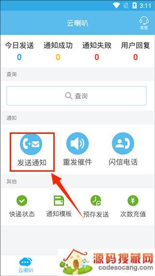 1、下载并打开云喇叭快递取件通知APP,来到主界面,找到“发送通知”选项并选择。