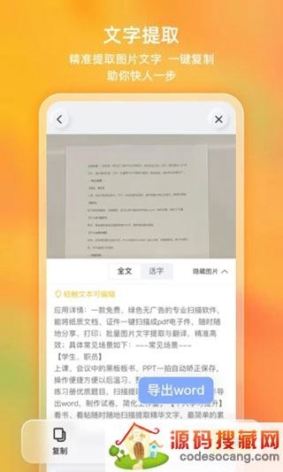 2、文档扫描编辑增加文字提取能力。