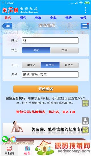 2、美名腾智能起名是一个全新理念的网上智能起名系统APP,是一款实用软件,可以为你提供了非常多的选项,让你可以更好为宝宝起名,同时有多个名字供您选择。