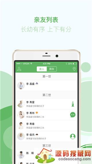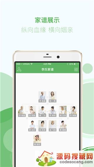 找你家谱app是由重庆找你科技有限公司打造的一款移动家谱管理软件。找你家谱安卓版旨在帮助家族恢复、保存传统家谱文化,为用户轻松记录家族生活日记,轻轻松松享受美好生活。用户通过找你家谱app,不仅可以轻松创建、录入家谱信息,并随时随地进行查阅展示。同时,你还可以时刻与家族成员保持联络,获取对方的联系方式。需要的用户可以下载使用哦!