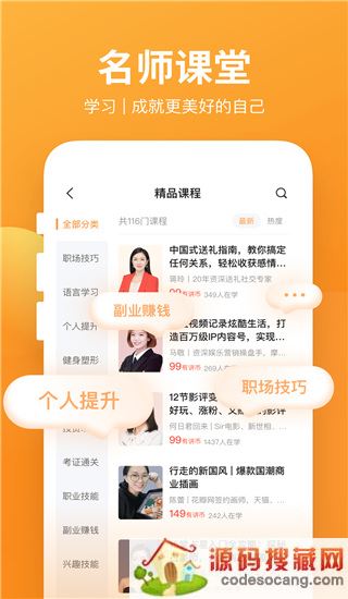 2、海量课程资源覆盖上百种技能,学习课程全面提升自己能力;