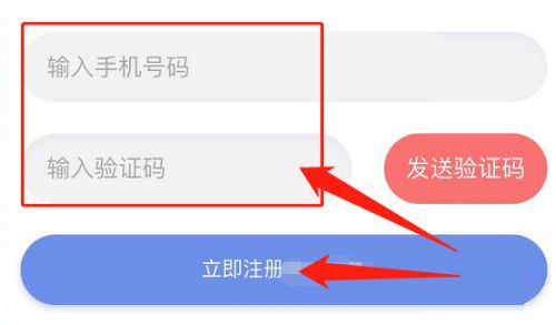 3、进入我的页面后,输入手机号与验证码,再点击立即注册即可。