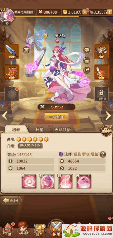 4、被动技能:圣赐女神(提高自身30%攻击,15%生命,10%暴击)光之和弦(暴击伤害提高15%和15%的攻击),后期建议优先培养人物搭配(清一色5星橙色武器装备,大后期3到5星红色武器装备,彩色符文)