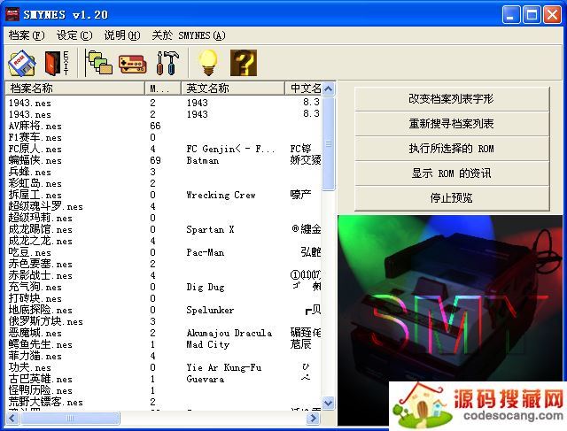 1、下载软件压缩包文件,无需安装,点击smynesc.exe即可运行模拟器,里面包含了84款经典的nes游戏。