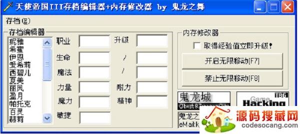 (有谁收集了这些代码的请与我联系,我会把它加上去,当然也会有你的大名出现在些修改器上)