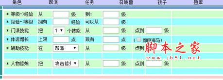 技能计算:包括0-180级师门技能所需经验金钱计算,帮派技能,辅助技能等。
