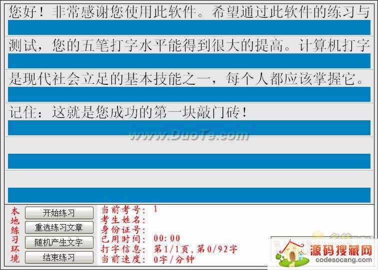 1、增加了联网练习的功能,客户机可向考试服务器申请联网练习,每次的练习成绩均能保存,有利于从考试服务器上调阅各考生练习一段时间后的进步情况。联网练习时可由电脑自动产生练习文字或管理员指定文件夹下随机选择文本文件。