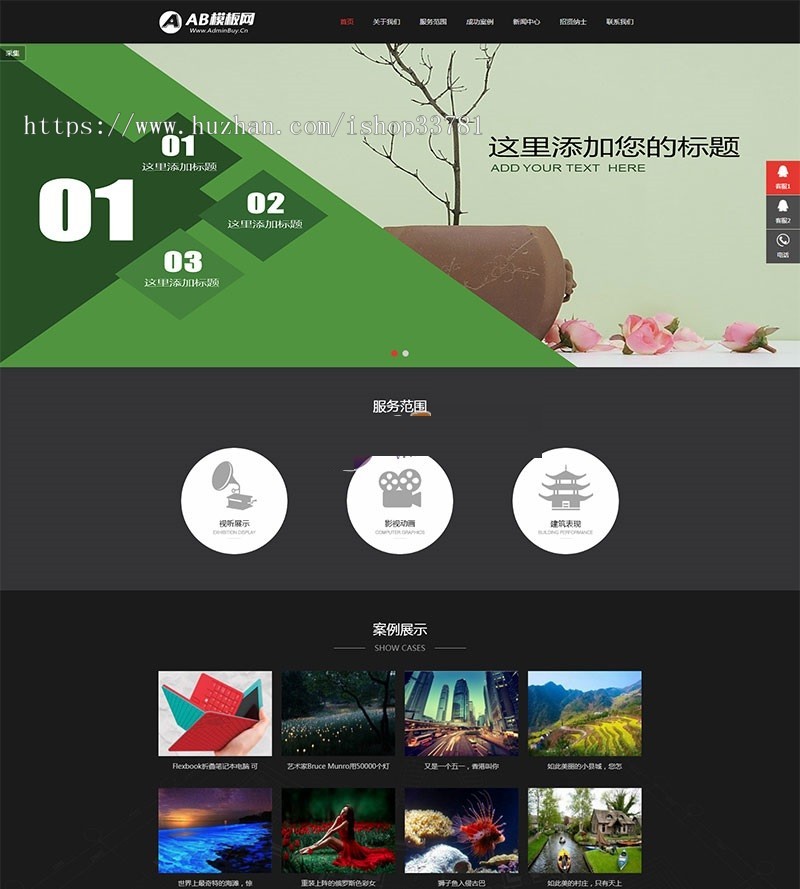 2、实际效果非常的酷炫,非常简约空气高档,模版简易,所有已数据信息启用,只需后台管理改动栏目名称就可以