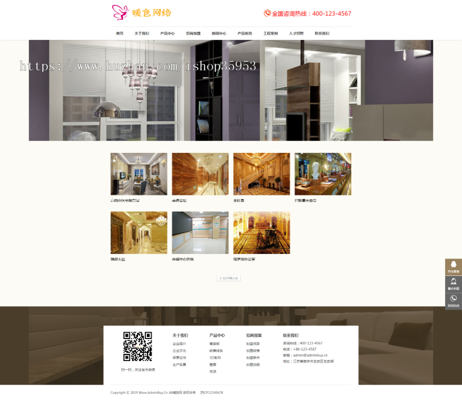 2、实际效果非常的酷炫,非常简约空气高档,模版简易,所有已数据信息启用,只需后台管理改动栏目名称就可以