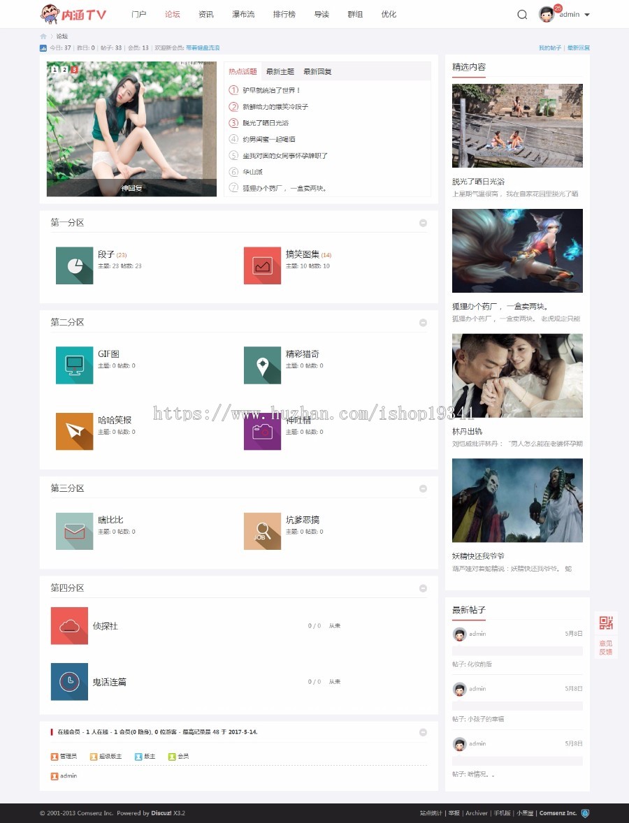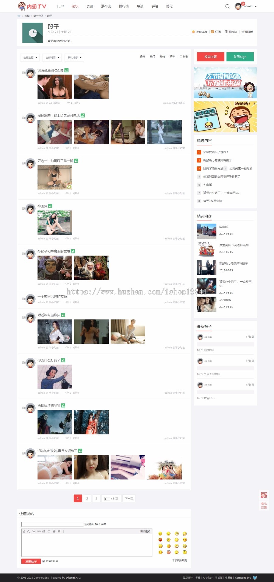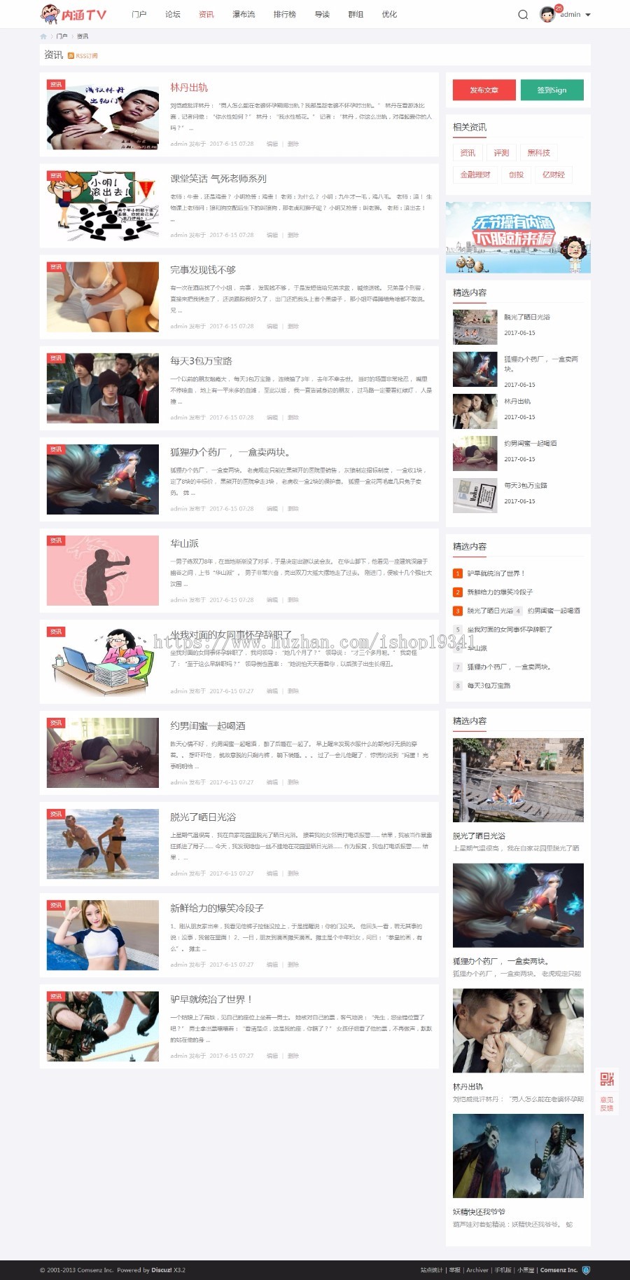 内涵TV段子+手机版模板,包含“电脑板” 和 同步“手机版”,整体布局排版采取了简约而不简单的设计理念,功能齐全,创造空间巨大;