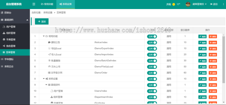 1. 用户管理,部门管理,字典管理,菜单管理,角色管理,通知公告,字体图标,登录日志等八个基础功能。