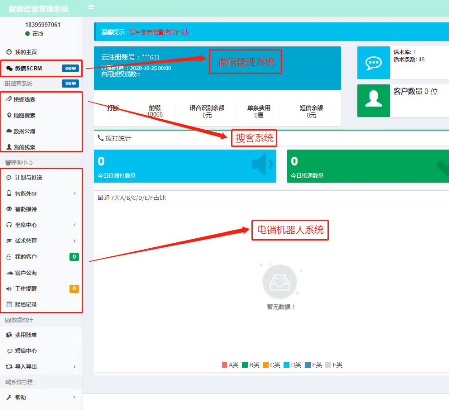 战驴云呼电话机器人是一款根据人工智能技术开发设计的,适用商品业务流程或服务推广要求的视频语音营销推广综合服务平台!根据精确语音平台,群呼潜在用户人群,并仿真模拟市场销售权威专家沟通交流开展信息内容挑选的人工智能技术语音机器人。集挑选意向客户、瞄准顾客、精确客户细分三重营销推广于一体,全面实施网络营销!智享云呼服务机器人能够 取代市场销售权威专家做初次打电话的意向客户挑选工作中。语音通话全过程中彻底效仿市场销售权威专家的视频语音,心态,向总体目标意向客户详细介绍。能与顾客积放互动交流,能发掘客户满意度,顾客回绝能挽留,顾客有意愿能缔约。让目标客户有不错的感受和体会。语音通话完毕后马上分辨顾客意愿水平意见反馈给市场销售权威专家,由市场销售权威专家二次跟踪。协助公司处理挑选意向客户难的窘境。