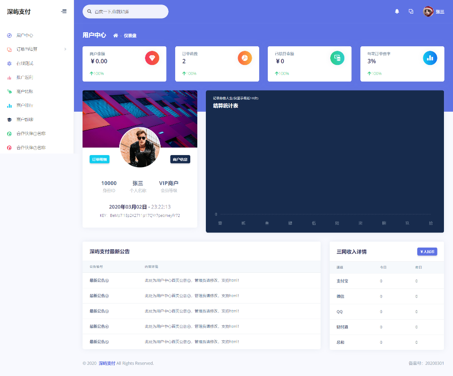 1.第三方即时到账系统软件,随意设定利率,适用自助式商家申请办理,为他人支付平台应用;