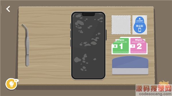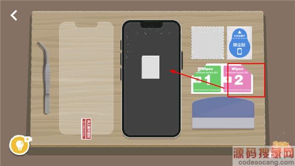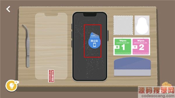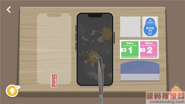1、这一关首先使用镊子在手机边缘滑动,将碎掉的手机膜拿下来,碎片也要清理掉。