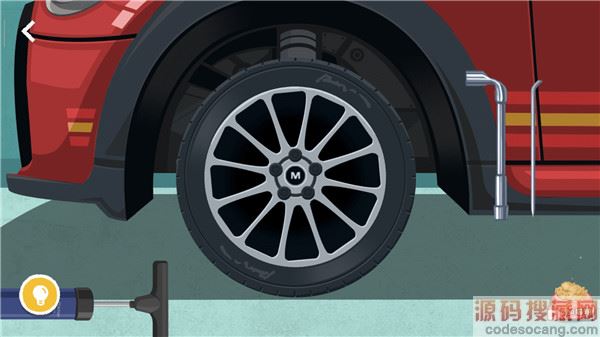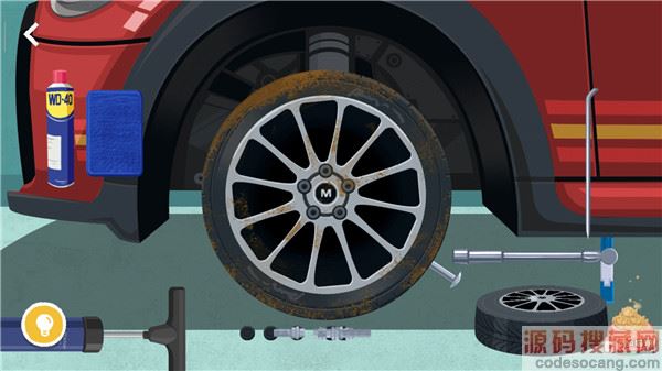 1、【完美备胎】关卡首先用细条工具将轮胎上的黑色东西卸下来,然后转动扳手将螺丝拧下来。