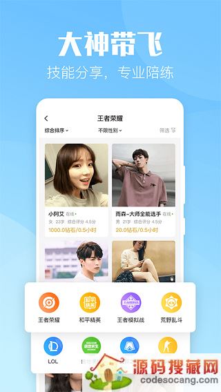 陪玩师可以是游戏大神,可以是搞笑的逗比,可以是温柔的小哥哥,可以是为你挡刀挡子弹的女汉子/小狼狗,让你不再是一个孤独的玩家。